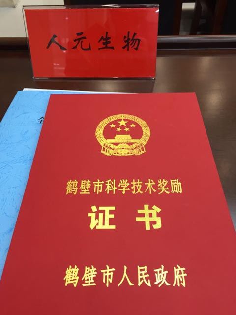 2017年3月27日,鶴壁市人民政府發(fā)布《關(guān)于2016年度鶴壁市科學(xué)技術(shù)獎勵的決定》,鶴壁市人元生物技術(shù)發(fā)展有限公司的“土壤有機(jī)質(zhì)提升關(guān)鍵技術(shù)研發(fā)與推廣”項(xiàng)目榮獲鶴壁市科學(xué)技術(shù)進(jìn)步獎一等獎。