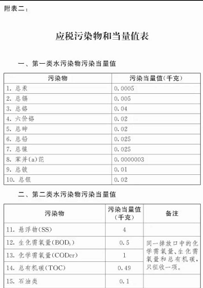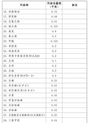 (二)應(yīng)稅水污染物按照污染物排放量折合的污染當(dāng)量數(shù)確定;
