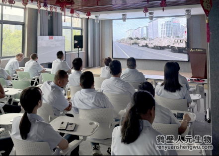9月3日上午,于鶴壁市東楊工業(yè)區(qū)人元生物技術(shù)發(fā)展有限公司(文中簡稱人元生物)二樓會議室,窗外一場金風送爽的秋雨方歇,室內(nèi)全體人員正襟危坐、著裝齊整、神情莊重,目不轉(zhuǎn)睛地注視著大屏幕,耳畔傳來自大屏幕的渾厚聲音: